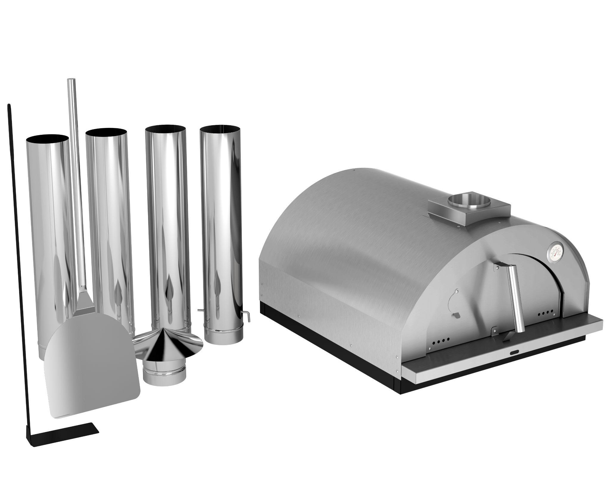 – Acompanha: 04 Canos de 60cm de altura em inox; 01 Chapéu chinês em inox; 01 Espátula; 01 Atiçador; 01 Manual de montagem; 04 Plaquetas refratárias; 01 Suporte para lenha.