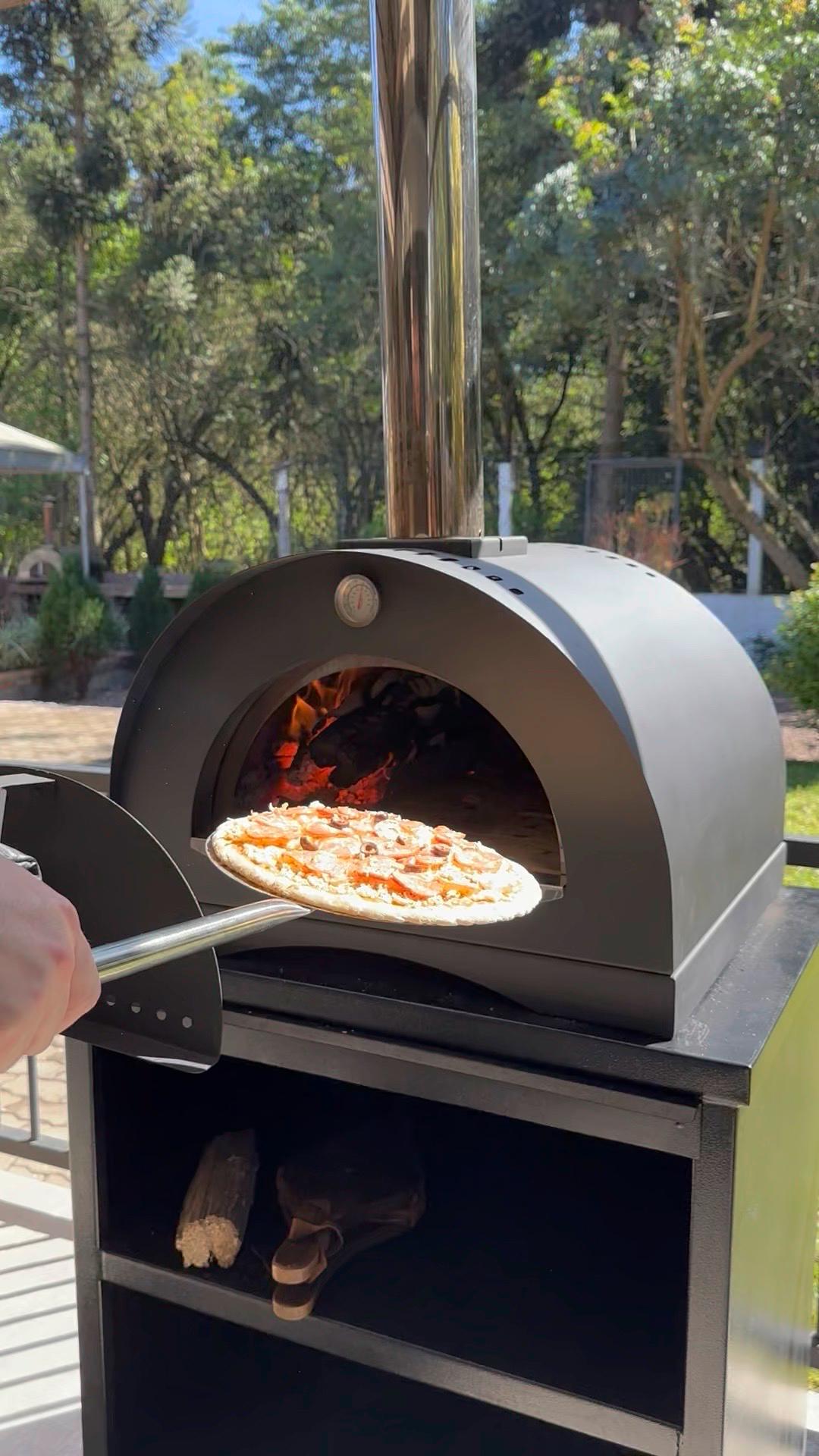 Compacto e projetado para uso interno, conta com estrutura em aço carbono e funcionamento a lenha, entregando uma experiência autêntica e saborosa.