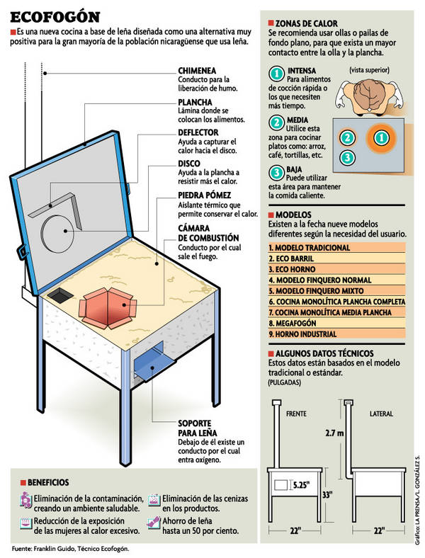 El ecofogón fue resultado de un proyecto de cooperación de doble vía entre Brasil y Nicaragua sobre modernización de uso de la leña, “donde nosotros (Brasil) llevamos un sistema de producción forestal moderno, un sistema de producción de carbón vegetal moderno y estudios del uso de madera para generar energía eléctrica y de Nicaragua para Brasil llegó el ecofogón”.